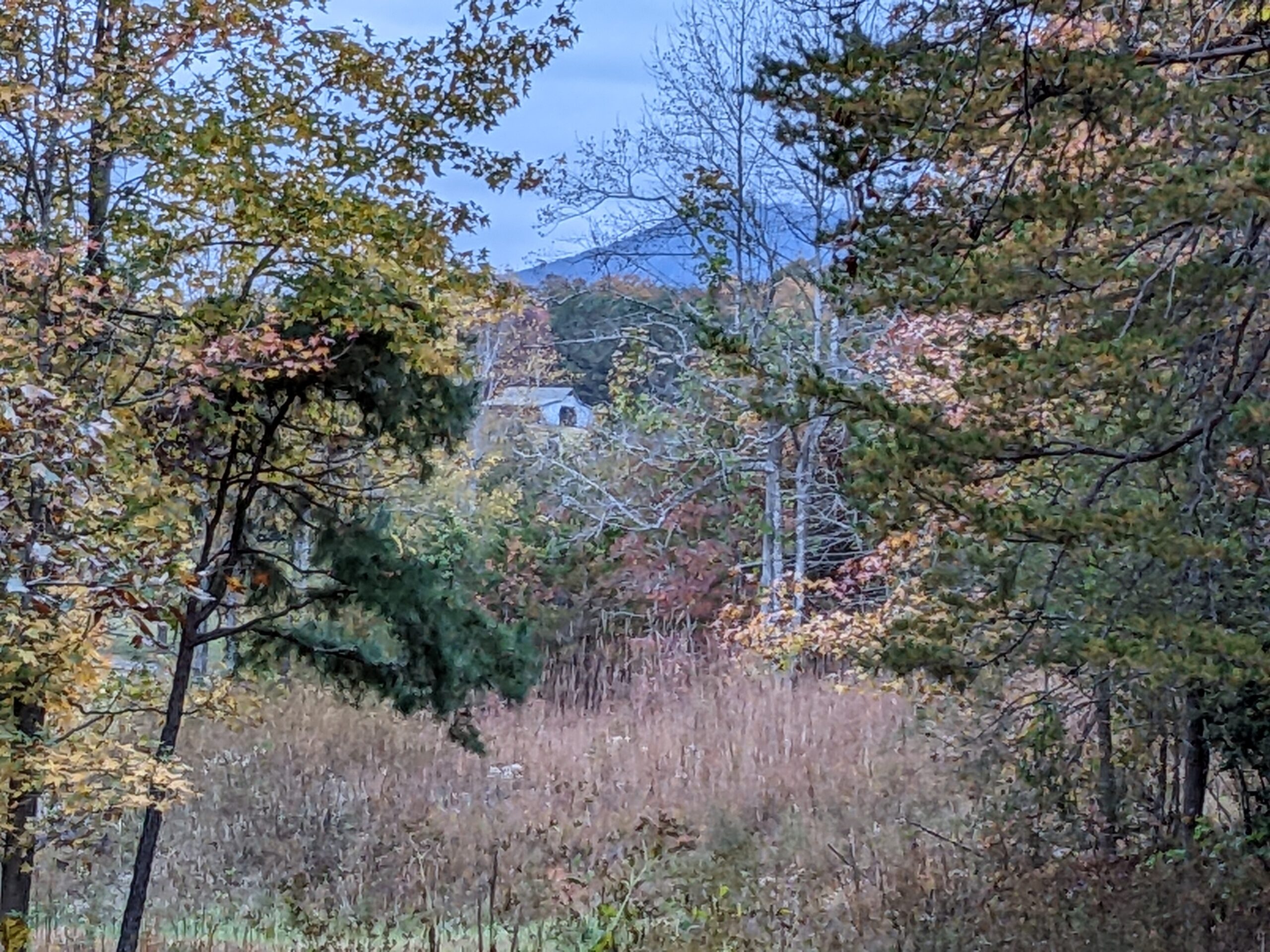 Note the bee box, which is supposed to shelter pollinators. Robins like to perch on it and poop…